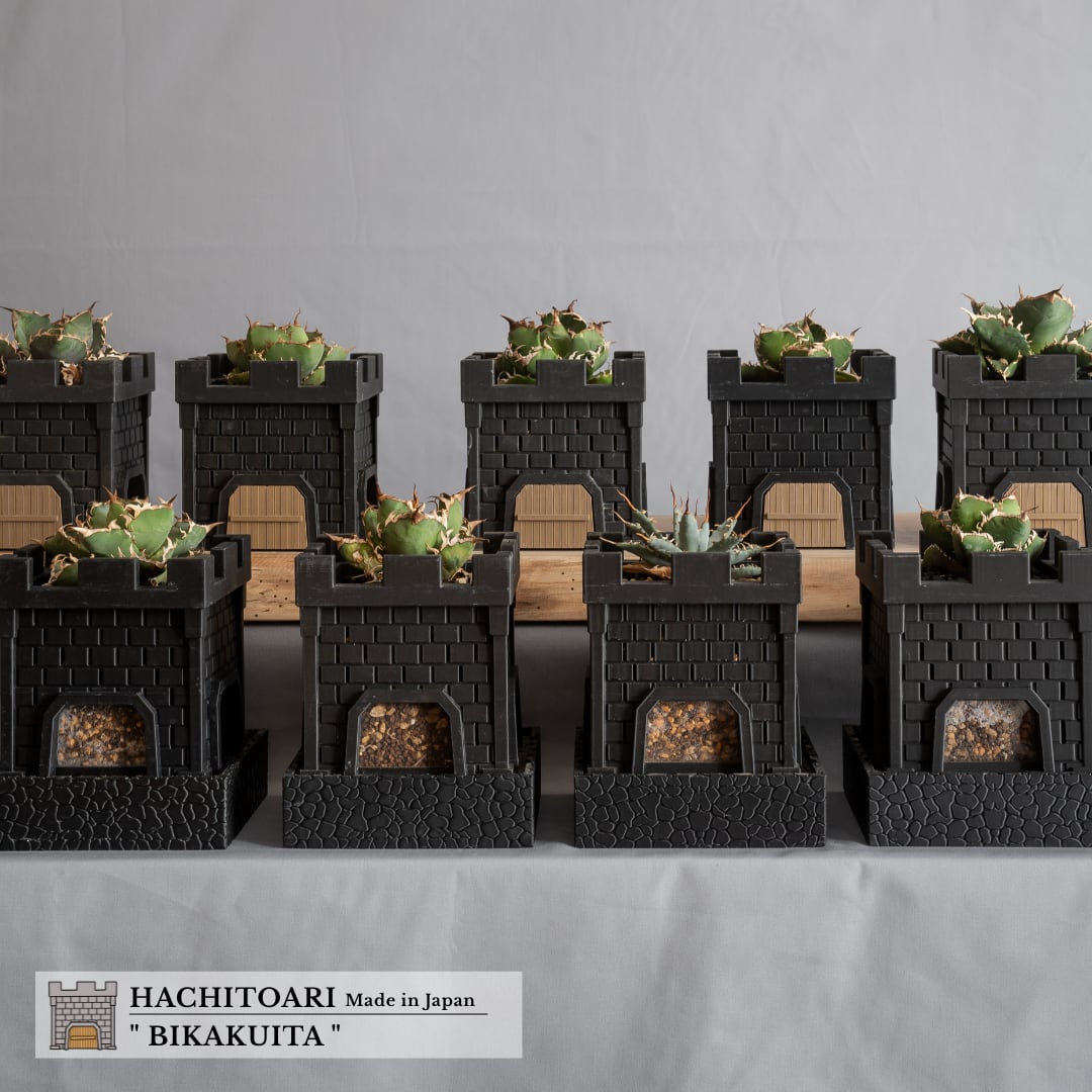 「根城鉢」は、古城をイメージしたデザインと高い機能性を兼ね備えた植木鉢です。お城の構造を活かし、通気性や排水性を向上させるとともに、リアルタイムで土や根の状態を確認できる扉を設けるなど、使いやすさにもこだわっています。