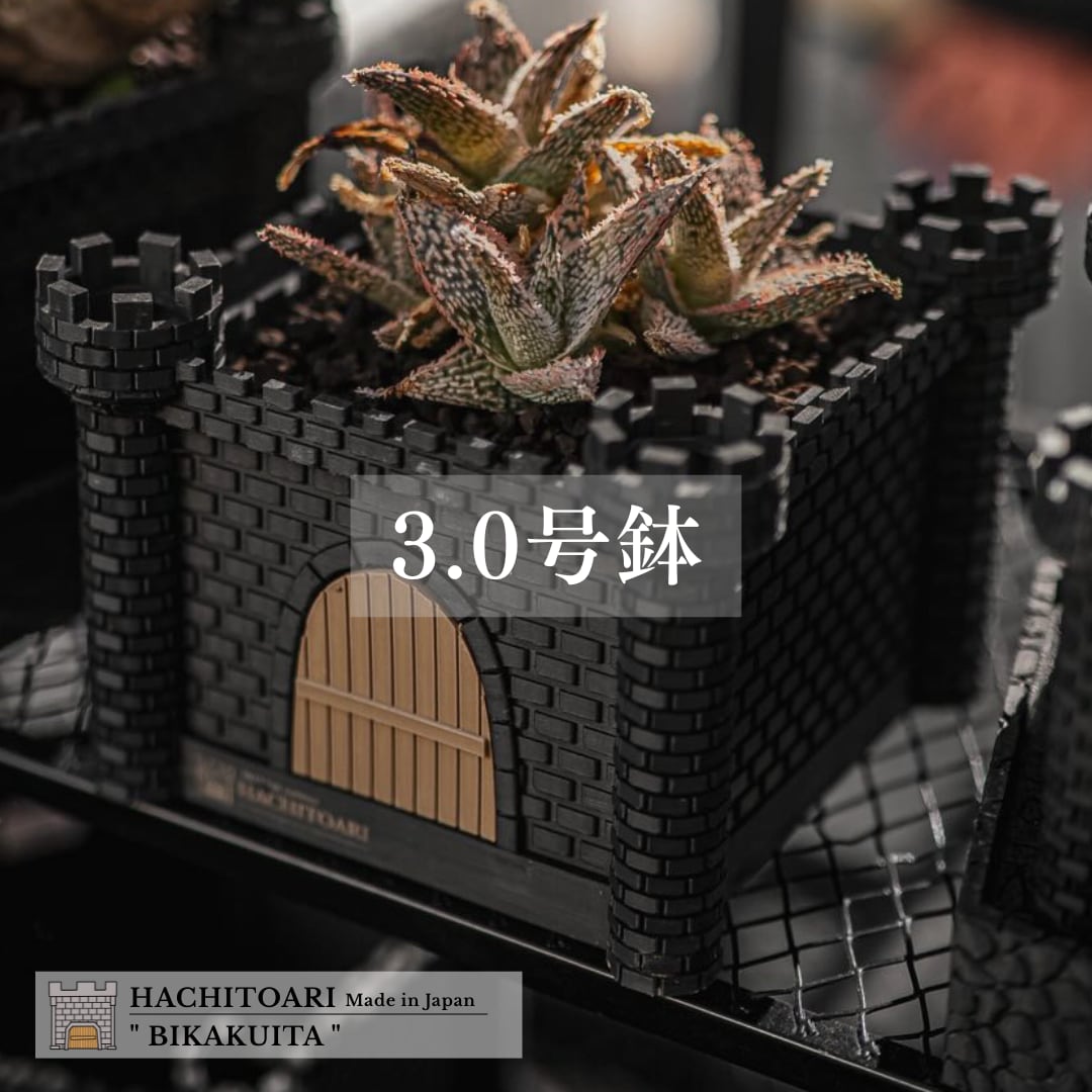 「水路鉢」は、根城鉢シリーズの後継モデルです。古城をイメージしたデザインを踏襲しつつ、新たな機能を追加した植木鉢です。お城の構造を活かした高い通気性・排水性に加え、鉢の頂上に配置された水路によって、一点からの水やりで均等に潤すことが可能です。