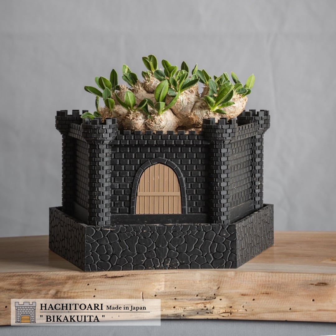 「ペンタゴン」は、水路鉢シリーズの派生モデルです。古城をイメージしたデザインを踏襲しつつ、新たな機能を追加した植木鉢です。お城の構造を活かした高い通気性・排水性に加え、鉢の頂上に配置された水路によって、一点からの水やりで均等に潤すことが可能です。
