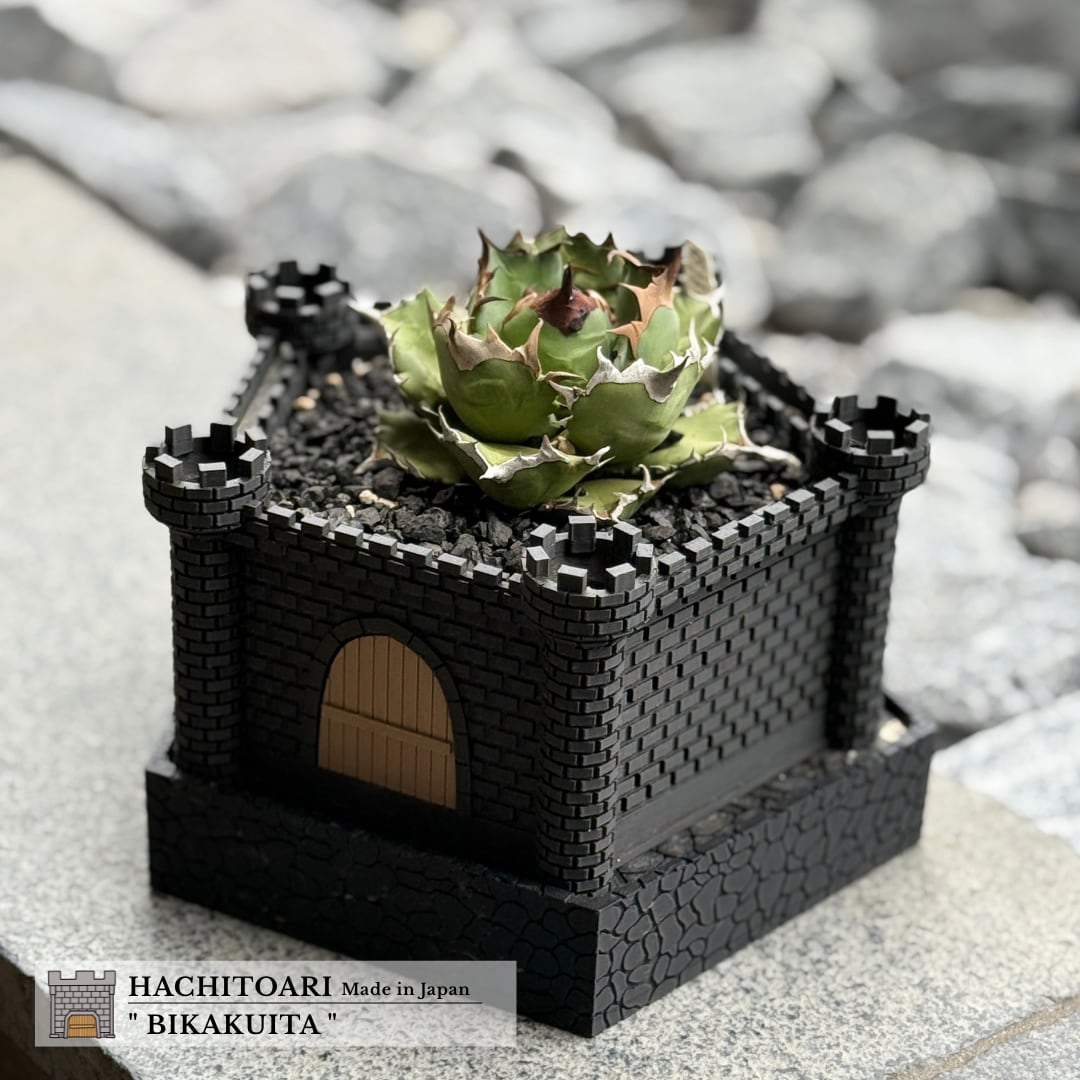 「ペンタゴン」は、水路鉢シリーズの派生モデルです。古城をイメージしたデザインを踏襲しつつ、新たな機能を追加した植木鉢です。お城の構造を活かした高い通気性・排水性に加え、鉢の頂上に配置された水路によって、一点からの水やりで均等に潤すことが可能です。